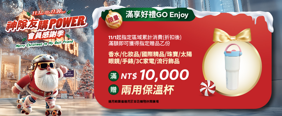 11/01起指定區域消費(折扣後)滿額即可獲得指定贈品乙份