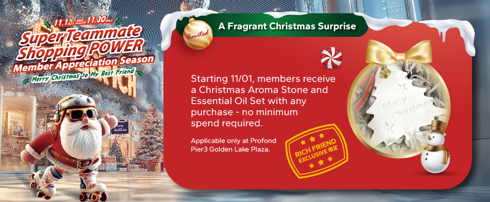 Starting 11/01, members receive a Christmas Aroma Stone and Essential Oil Set